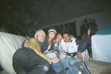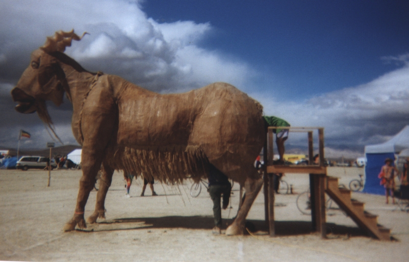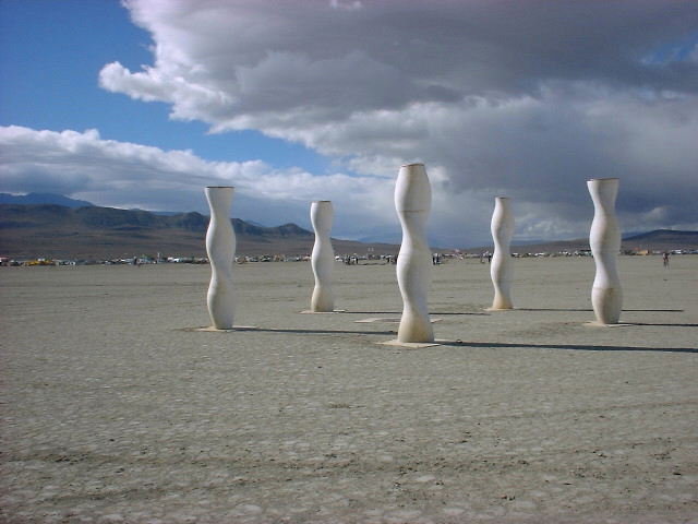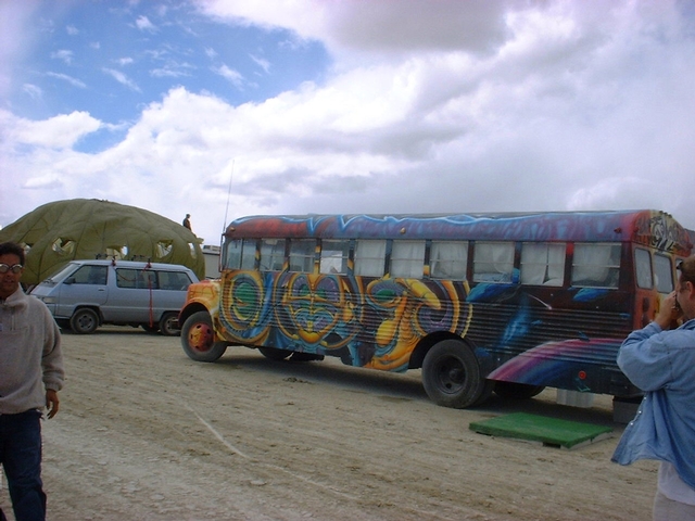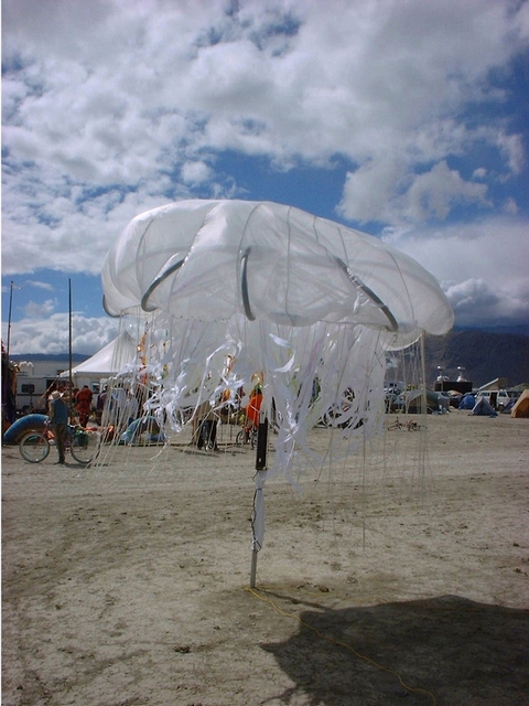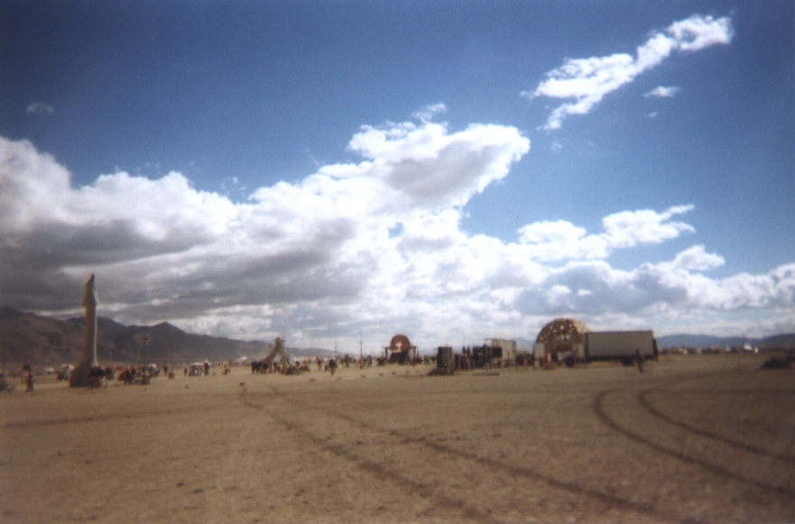 On Sunday, September 3, 2000, I watched the sun rise while I was sitting outside our tent in the place that is temporarily Black Rock City, Nevada every year. Hours before, the Man had been burnt, and I had spent the rest of the night exploring the amazing art in the "city". The sun cast its orange rays on the clouds causing them to shimmer and burst with life. In my purely sleep-deprived state, the shimmering clouds seemed to turn into mermaids that turned into fish that turned into swans that turned into dragons that turned into butterflies that I could almost reach out and touch. Behind me, the Black Rock mountains seemed to form a huge tent and slowly billow over the high desert (or "playa") covering all the tents that comprised Black Rock City. That is just a taste of one of the most surreal and psychedelic experiences I've been through in my life.