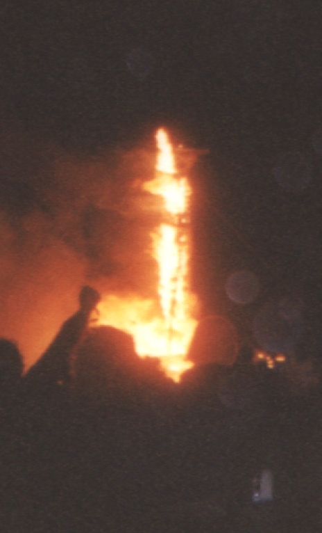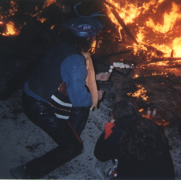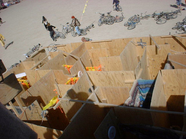 On Saturday, September 2nd, we again headed out to the central area walked through the Maze which was incredibly bizarre, came back and cooked a great dinner. We finished just in time to head out to watch the forty-foot man burn (which was arguably one of the least impressive displays). It first started with some fireworks and then the man was on fire all over and in a few minutes, a crowd was milling around it. As the structure collapsed, people rushed closer and started moving around in a circle around the fire. Bagus and Crash got separated from Jason and I (our walkie-talkies proved to be useless since almost everyone was using them). The two of us moved around in a circle close to the burn, watching people roast marshmallow and amusedly marvelling at the great incongruity.
