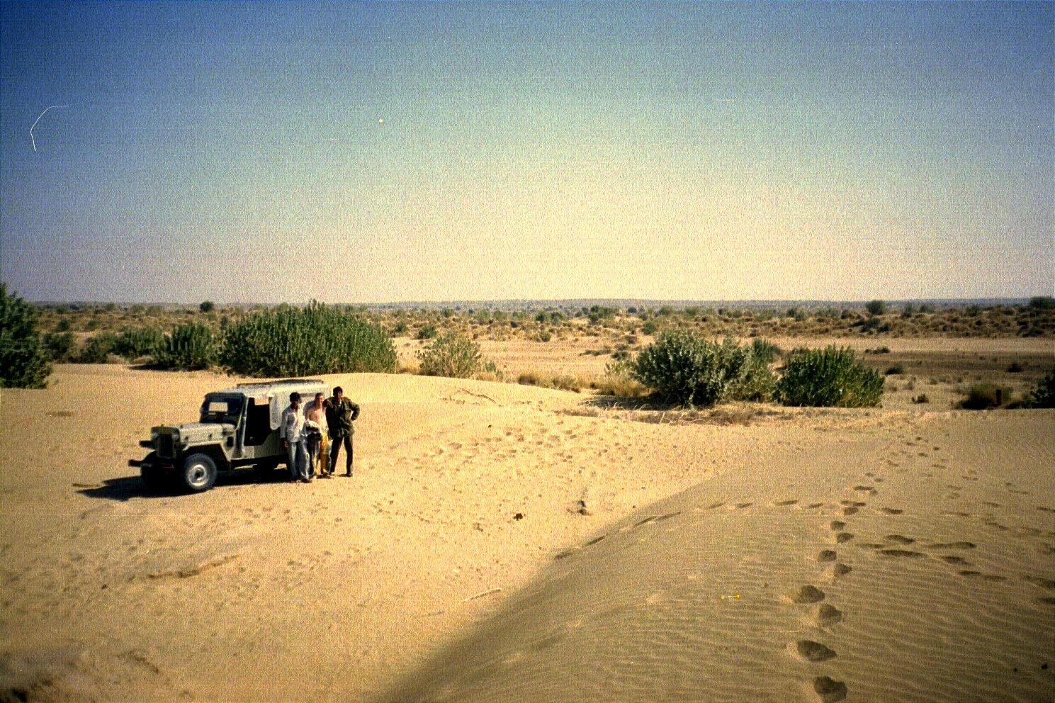 Finally we again laid out a path made from shrubs and Manu went back 100 metres/330 feet or so, and shot through the dune. We were elated! We finally ended up in Khuri, had our lunch, and drove back to New Delhi. We stopped for the night in Sikar after again having some great food along the way.