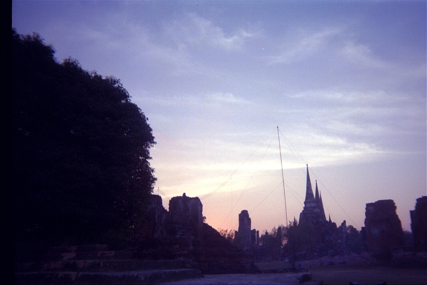 Just before the show started, we saw a shooting star pass up in the sky, which provided a great intoroduction. The show itself was quite amazing. It was somewhat akin to Pink Floyd playing Pompeii (which I've only heard about). There was a great light and sound show set on 400+ year old ruins, which were spectacular in their own right, but the lights made everything completely surreal. The sound (Thai classical music) was great and the light effects (whcih included candles in balloons that floated off into the sky) were clever. The plot chronicled the rise and fall of Ayutthaya, going from a prosperous kingdom to its eventual ruin due to internal conflicts.