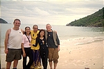 January 20. The next day, after breakfast, we headed to Phuket and the Phi Phi Islands. We were on standby for the flight to Phuket, but we made it and by 4p, we had checked in at the Kata Garden Resort and were wandering around the Kata beach in Phuket. After sampling some of the local Thai cuisine, we headed out to Patong beach, which is even more hedonistic than Bangkok! We saw a transvestite-based show in one of the bars which was amusing in a crude way, and went bar hopping. One of the bars we went to had excellent music, playing a lot of 70s rock and metal, including Iron Maiden, Deep Purple, and Rainbow. We met this random guy named Troy, a diver, who was celebrating his birthday who hung out with us for a bit. We also got in some dancing at the local discos. P'Ram drank more than she should have which led to an heated argument between her and Mali, but we finally made up and made it to the hotel.