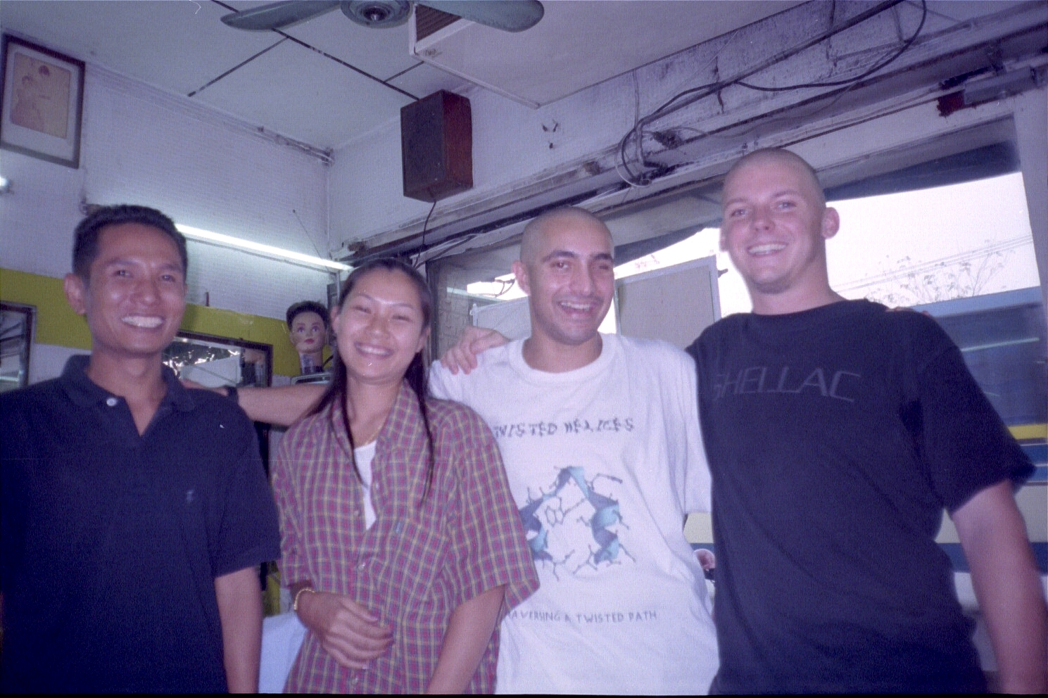 After leaving Wat Pho we tried various buses to get to where we wanted but not being able to speak Thai was a definite handicap. Shortly thereafter, we were hopelessly lost. I decided to shave my head completely to match Jason (who had his head shaved before he left) at a barber shop we ran across.