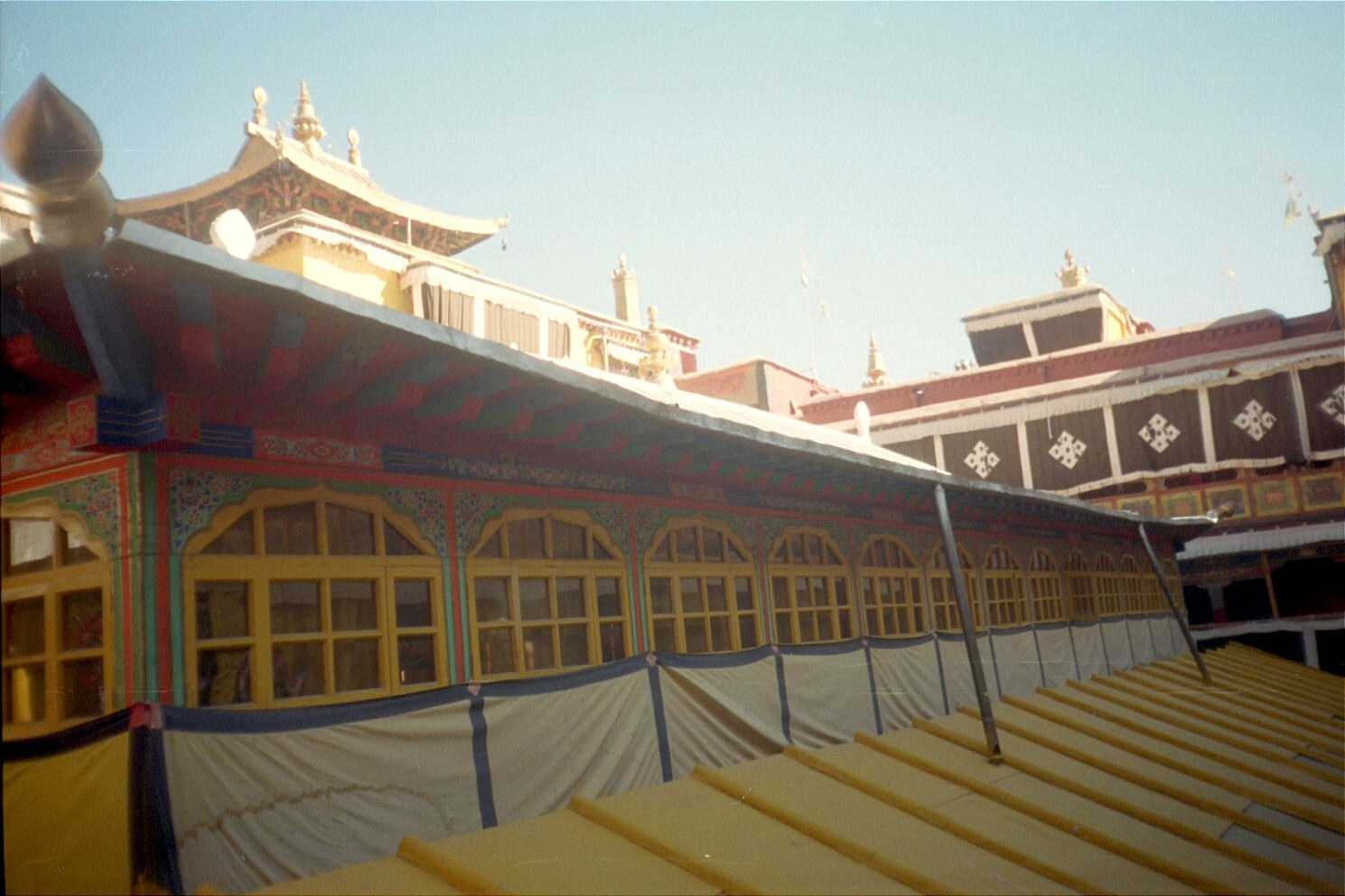 December 21. The next morning, I woke up to see the sunrise from the roof of the guesthouse we were in. We then drove on to Xigatse (3900 metres/12,870 feet) and stopped for lunch there. Xigatse was the first big city we saw in Tibet and within an hour or so, it was disturbing. It was clear that the Chinese had made Tibetans a minority in Tibet. Furthermore, according to our guide, Tibetans are not allowed to stay in a position for too long for fear that they will rise in social, political, economic stature. We went to the Tashilhunpo Monastery, the seat of the Panchen Lama (who China officially recognises, but has substituted its own puppet for the position of the 11th Panchen Lama who remains one of the youngest political prisoners in the world). Tashilhunpo monastery is part of the Gelugpa sect and is a great place to explore.