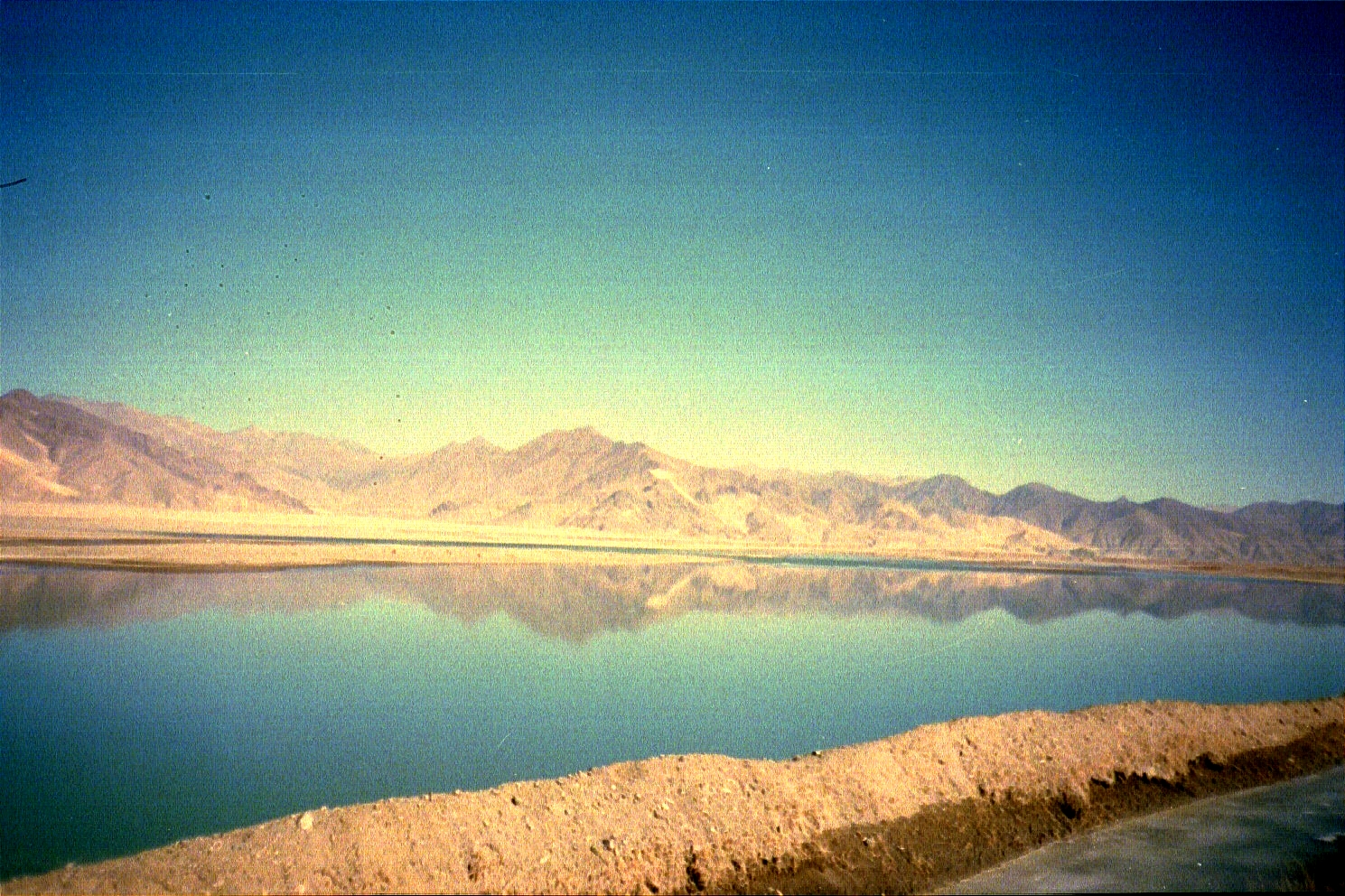 December 26. Since we arrived in Lhatse after dark, we had missed some of the sights along the road and had an opportunity to check them out on the way back. In particular, there was this view of this beautiful lake that was incredibly still, as you can see from the reflection: