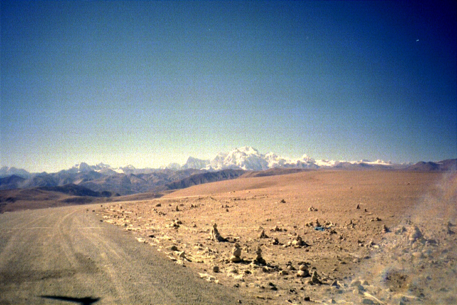 From Nyalam, we went through the Tong-la pass (5120 metres/16,896 feet), the highest point along the Friendship Highway. At this point we began to feel the altitude and had to take our Diamox pills. From the pass, we could see some amazing views of the Himalayas and Everest, and we stopped for a while and admired the serenity (the Friendship Highway derives its reputation as one of the most spectacular highways in the world for the views of the Himalayas and the Tibetan plateau offered).