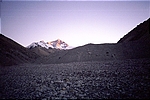 We finally made it back to the ice sheet which we had to traverse without slipping (one slip would've meant a fall about twenty feet on the rocks). This was fairly easy, but perhaps it was altitude or the darkness, I was quite apprehensive (especially considering that we had to scramble on rocks for a little bit which could cause a landslide at any point before finally walking on the glacier). Fortunately, Jason guided me along the way and we made it without a hitch, even though the rock scrambling was more frightening than the walk on the ice (which, if done right, isn't that hard, as Jason demonstrated).