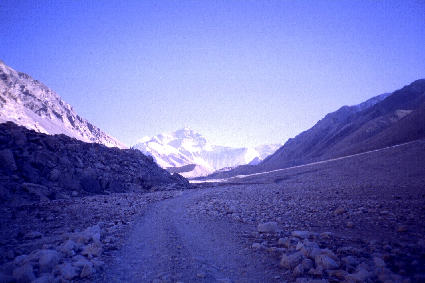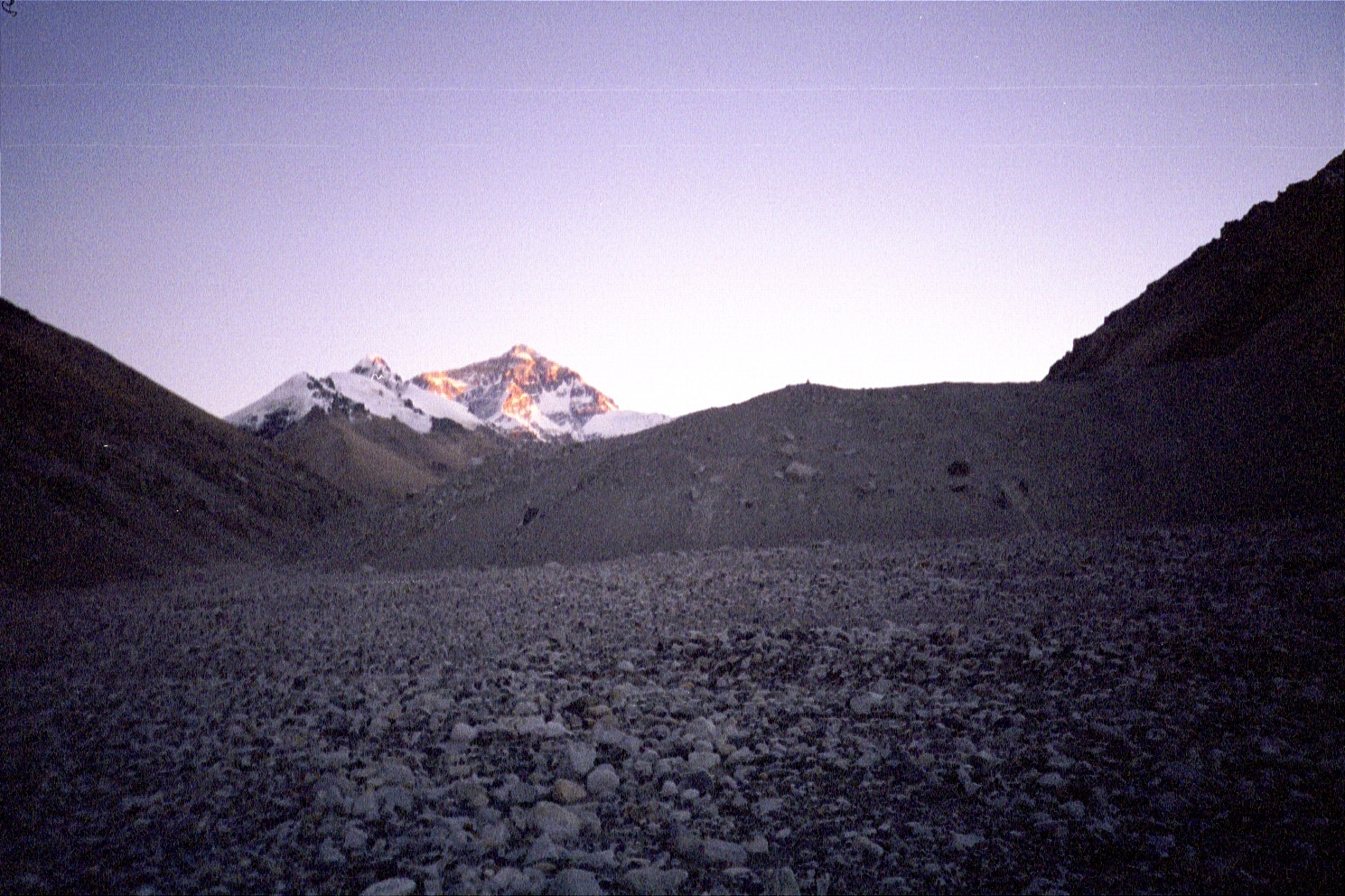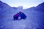 By the time we hit a sheet of ice (on a ridge) that the car couldn't go through, it was approximately around 4p. We then decided to walk the next ten or so miles (starting at an elevation of 5000 metres/16500 feet) to the base camp marker. The sun was out and it was fairly decent going, but the altitude was definitely taking its toll (especially since we were going all out to make it before the sunset). The view of Everest was a great motivator! Finally, we reached the base camp marker at 5200 metres/17160 feet around 730p, exhausted and exhilarated.