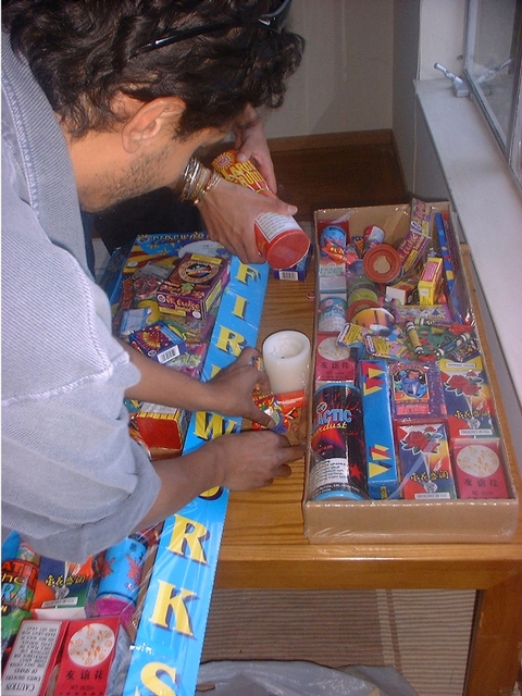 As a kid, we used to spend thousands of dollars on fireworks every year, which stopped when I was ten (people who know me personally know why). Since then, I've never played with them. I was generally content watching fireworks-based shows, but that all changed this fourth of July (2000). It was the best one I've lived through thus far, thanks to my friend Jason's idea of setting off our own fireworks and, of course, the fun crowd I did it with. (Jason also took the pictures you see above.)